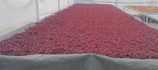 Roselle does best if it is dried immediately after harvesting. The longer you wait, the higher chance it will lose its texture and develop mold. Best practice is to begin processing within 24 hours.